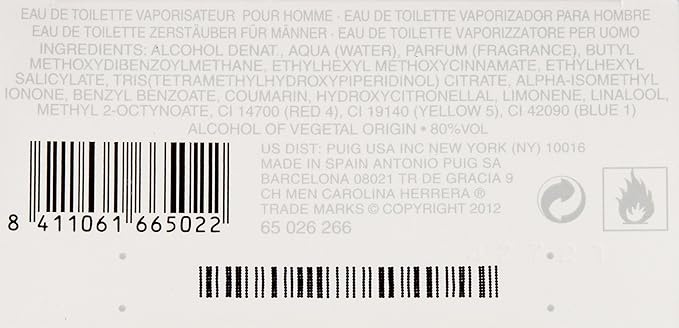- Scent : Carolina Herrera Ch EDT Spray for Men 3.4 Oz.