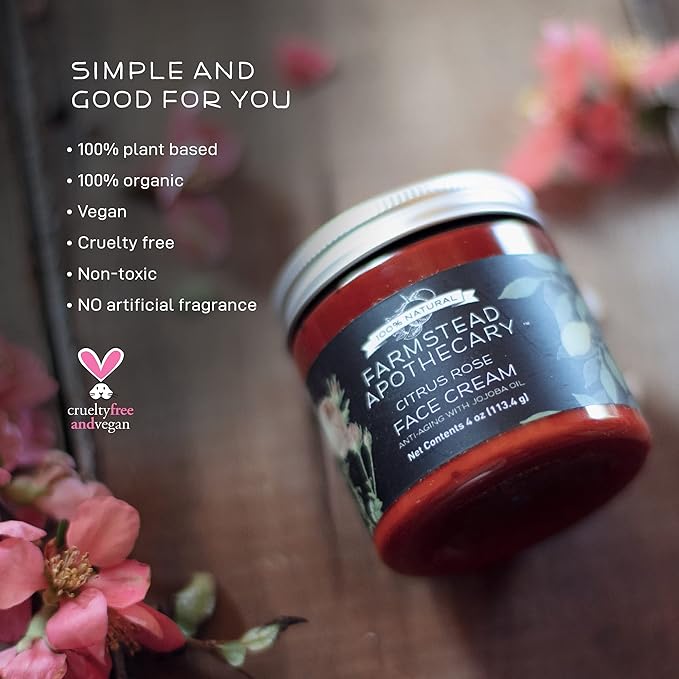 Farmstead Apothecary 100% Natural Anti-Aging Face Cream with Jojoba Oil, 4 oz (Citrus Rose)