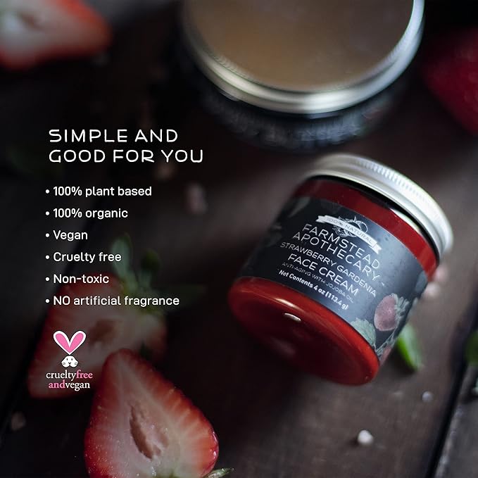 Farmstead Apothecary 100% Natural Anti-Aging Face Cream with Jojoba Oil, 4 oz (Strawberry Gardenia)