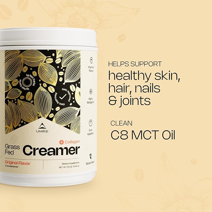 LevelUp Creamer, with Energizing MCT Oil and Collagen Peptides, Keto Coffee Creamer, Supports Natural Energy & Ketone Production - Original (Unsweetened) 19 oz