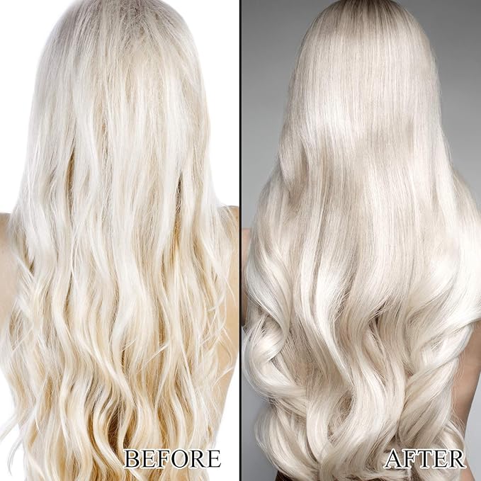 - [CLEAN AND REPAIR]Shampoo gently cleans the hair, eliminates brassy and yellow tones in blondes and repair split ends