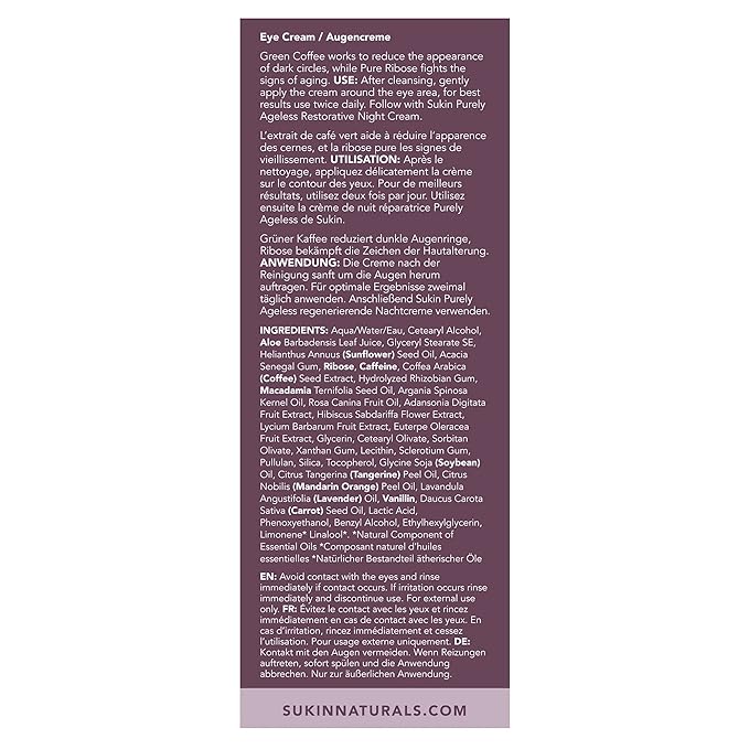 Sukin Purely Ageless Reviving Eye Cream, 0.85 fl oz