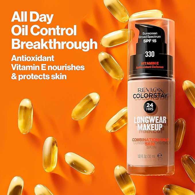 Revlon Liquid Foundation, ColorStay Face Makeup for Combination & Oily Skin, SPF 15, Medium-Full Coverage with Matte Finish, Dune (295), 1.0 oz