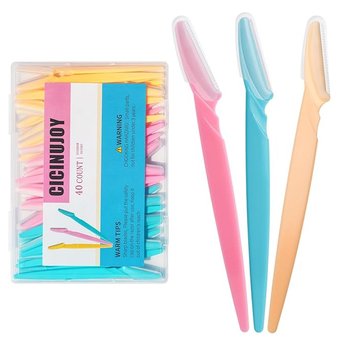 40pcs Eyebrow Razor for Women, Face Shaver Kit Dermaplaning Tool for Peach Fuzz Removal, Stainless Steel Blades with Protective Covers | Eyebrow Trimmer, Facial Hair Removal