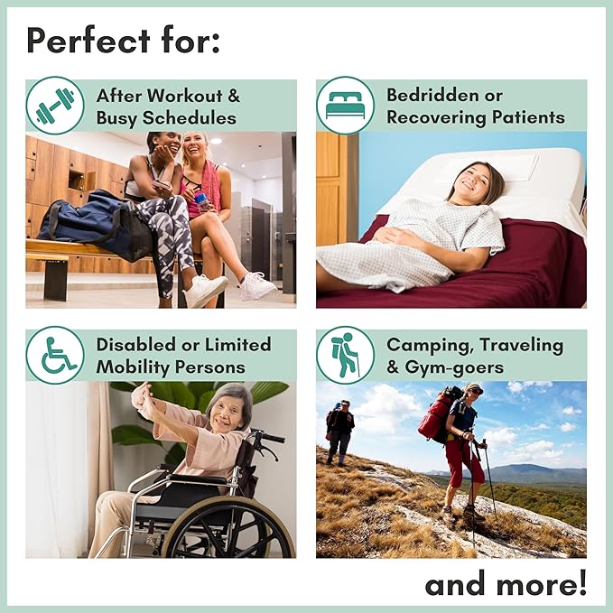 - Great for hiking, camping, backpacking, bedridden & disabled persons, perineal cleansing, or any time a shower is unavailable or tough to get to.