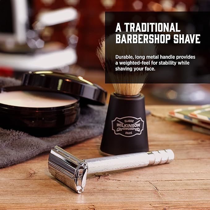 - A CLASSIC SHAVING EXPERIENCE - Our double edge safety razors for men bring the classic barbershop shave to the comfort of your home. The double edge blades offer a close shave while the premium metal handle provides a weighted feel and vintage-inspired look.