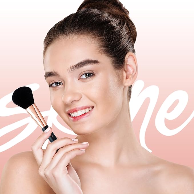 Skone Cosmetics Powder Brush - Luxe Premium Rose Gold and Synthetic Black Face Powder Brush - Professional Grade Nylon Powder Face Brush For Applying Pressed Powder, Loose Powder, Setting Powder, Bronzer - Cruelty Free Makeup Brushes