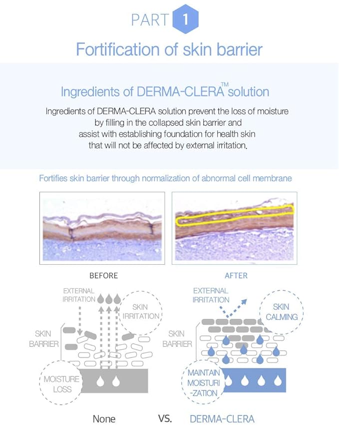 - π¦ DERMA-CLERA helps fortify the skin barrier, calms the skin, maintains moisture level, alleviates and calms irritation, and helps skin regenerate.