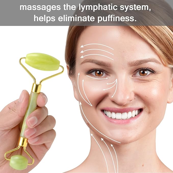- Jade Roller is a skin care tool will cool, tighten, and de-puff your face in seconds as it massages. It can immediately remove muscle strain as the roller smooths fine lines and eliminates wrinkles.
