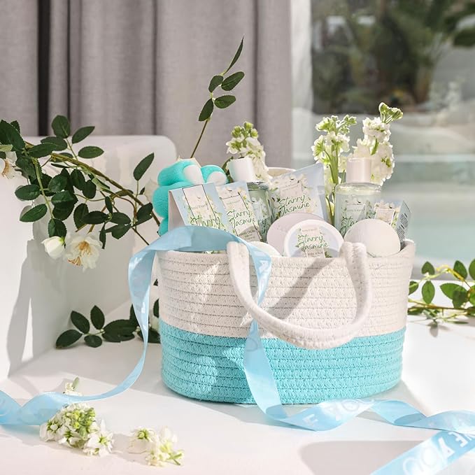 - Elegant Jasmine Scent: Our spa set is infused with fresh jasmine essential oils. When you apply these bath products to your body, you can indulge in the intoxicating scent of jasmine, relaxing your mood and providing you with energy throughout the day