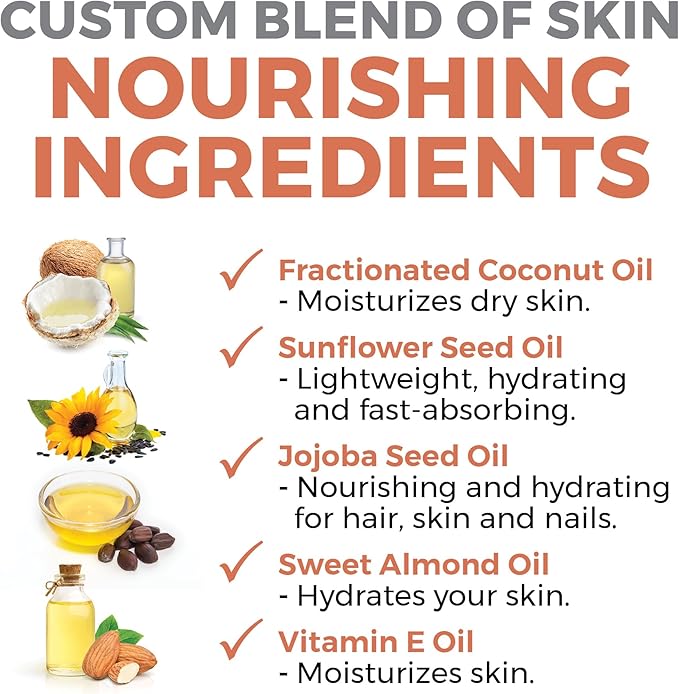 - NOT STICKY, NON-GREASY BODY MASSAGE OIL — This massage oil is not sticky or greasy, which means there’s no fuss and no mess - just a silky smooth application you’ll keep going back to making it the perfect hydrating body moisturizer.