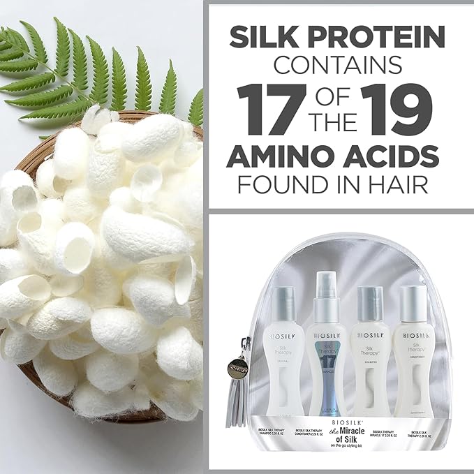 - ON-THE-GO STYLING KIT: This kit contains BioSilk Silk Therapy Original, BioSilk Silk Therapy Miracle 17 Leave-In Treatment, BioSilk Silk Therapy Shampoo, and BioSilk Silk Therapy Conditioner. Perfect to keep your hair healthy and when travelling!