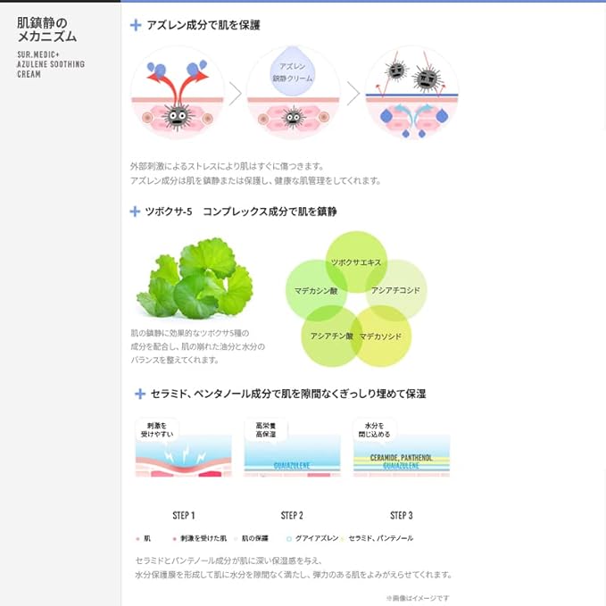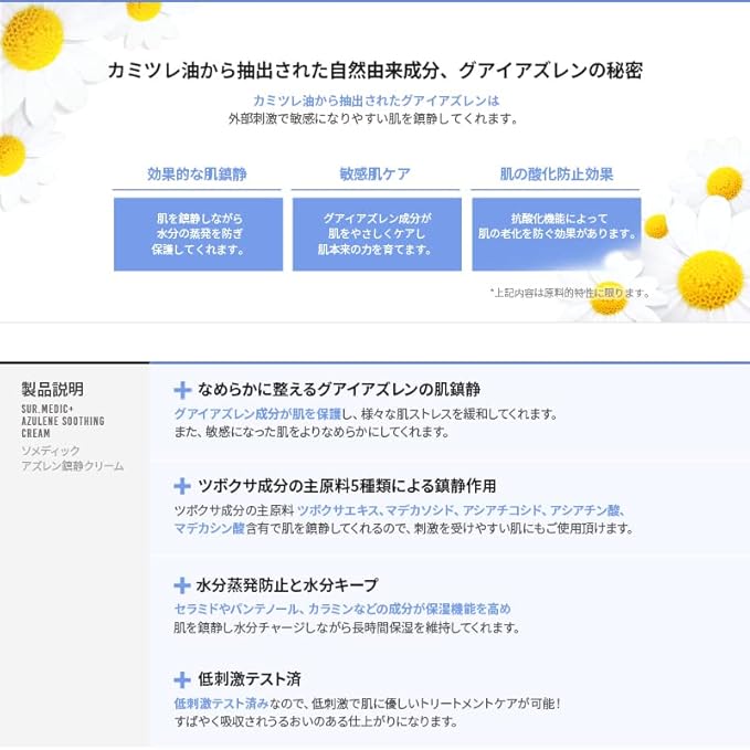 - [Skin Soothing] Enriched skin soothing ingredient, Guaiazulen, instantly calms and protects a sensitive skin.