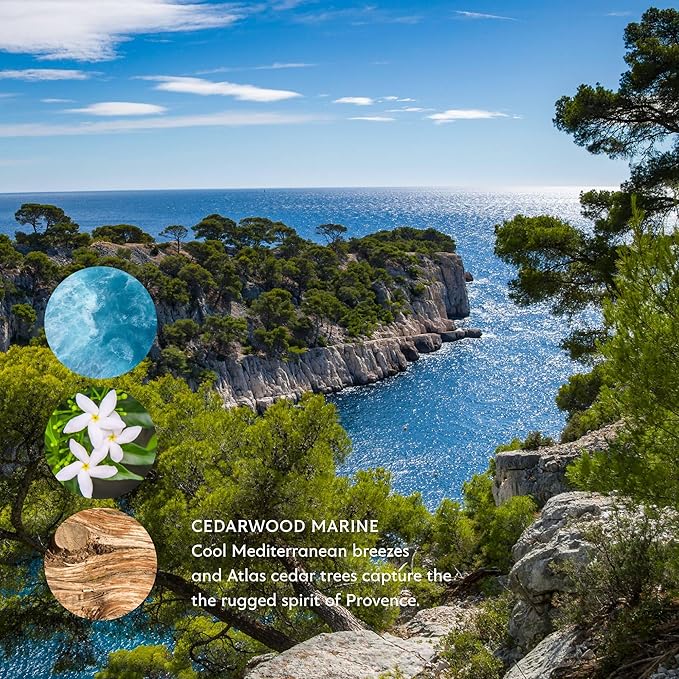 - PREMIUM FRAGRANCES ✓ Inspired by the Mediterranean coast where cool marine breezes and the towering Atlas pine brings the energy and spirit of Provence into your shower.