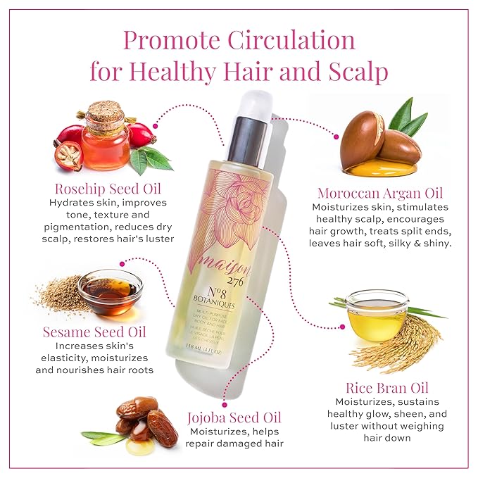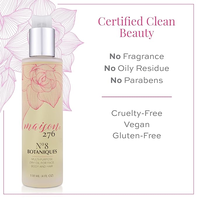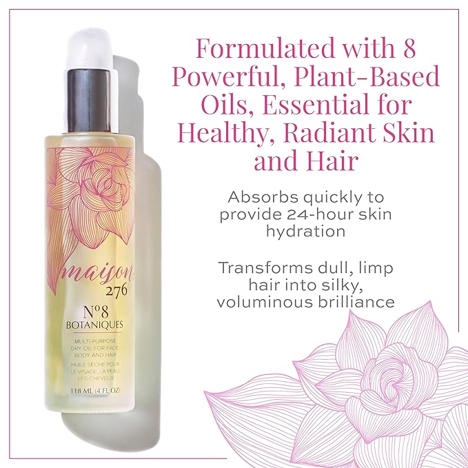 Maison 276 No. 8 Botaniques Multi-Purpose Moroccan Oil Moisturizer for Face, Body & Hair, After Bath & Shower Body Oil For Women & Men, Paraben Free, Sulfate Free, 4 Fl Oz