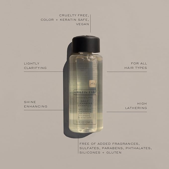 Kristin Ess Hair Fragrance Free Daily Cleansing Shampoo, Lightly Clarifying, Shine Enhancing, Vegan, Paraben, Sulfate, Phthalate and Silicone Free, Gluten Free, 10 fl. oz. - Pack of 1
