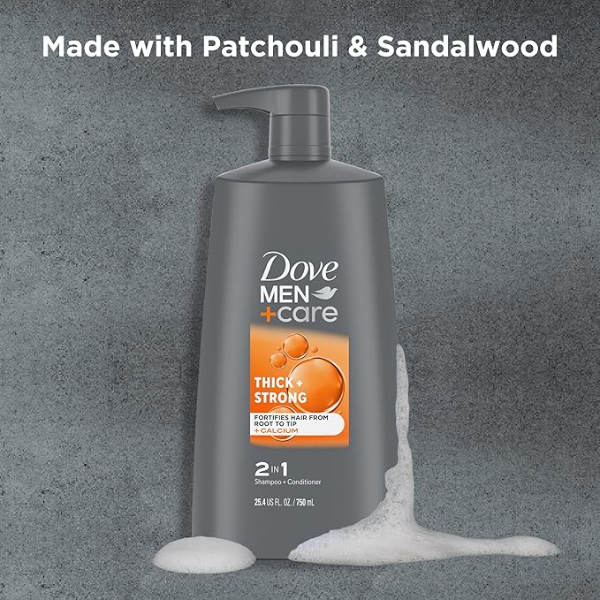 - Dove Men+Care Thick + Strong 2-in-1 Shampoo and Conditioner is designed for men with fine and thinning strands who want stronger, more resilient hair.