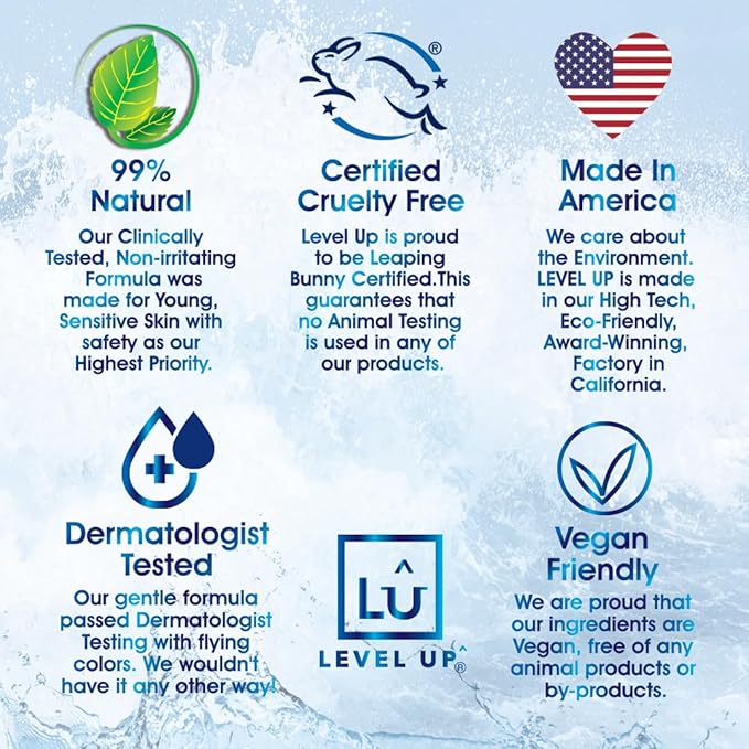 - DERMATOLOGIST TESTED FOR BOYS 8+. LEVEL UP DEODORANT FOR GROWING BOYS, is specifically formulated for young, sensitive skin. 100% NON-TOXIC, Level Up contains NO aluminum, NO parabens & NO alcohol. Level Up was created with safety & health as a top priority.