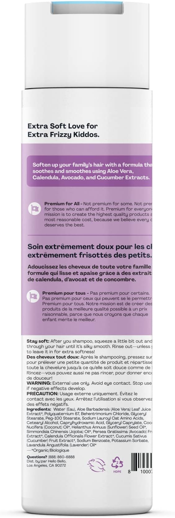 Hello Bello Soft Lavender Conditioner | Hypoallergenic, pH-Balanced & Dermatologist-Tested, Plant Based Formula for Babies and Kids | 10 FL Oz