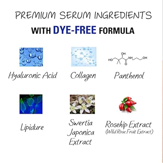 - 【PREMIUM SERUM INGREDIENTS WITH DYE-FREE FORMULA】 Rosehip Extract (Wild Rose Fruit Extract), and Swertia Japonica Extract and dye-free natural ingredients that even avoid pigmentation on the skin