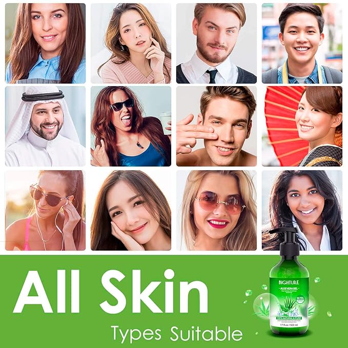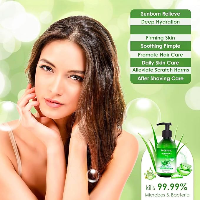 - ✅ [Suitable for All Skin Types] - BIGHTURE organic aloe vera gel is great for relieving scalp itch, dandruff, and oily skin, razor burn, sunburn, stretch marks and scars, etc. Improve skin and relieve wrinkles, leaving your skin smooth and silky
