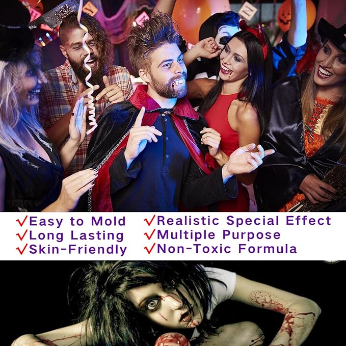 - Easy to Use and Long Lasting:Scoop out some scar wax with spatula,place it on the skin and mold the desired shape what you want.Blend the edge and smooth it with petroleum jelly or fingers.Our fx makeup is infused with special formula that makes it hold up well on skin,last long and last through sweat,great santa helper for christmas makeup,perfect special effects makeup for christmas cosplay theme party and Halloween.