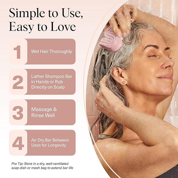 - SALON-QUALITY RESULTS AT HOME β Made in the USA using premium ingredients, this hair shampoo bar delivers a rich lather for deep cleansing and moisture. Simply wet your hair, lather in your hands or apply directly to the scalp, massage, and rinse. Pro tip: Pair with our Beauty Bar Bag for best results.