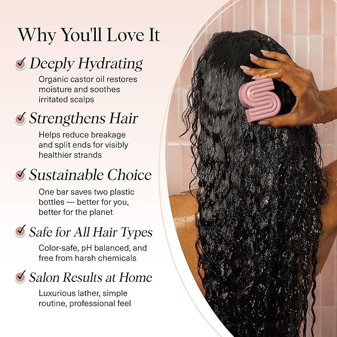 - DEEPLY NOURISHING WITH ORGANIC CASTOR OIL β This castor oil shampoo bar is crafted with organic castor oil, known for its ability to hydrate and soothe the scalp, reduce irritation, and help detoxify with natural antimicrobial properties. Ideal for restoring balance to dull, dry hair while promoting a healthy scalp environment.