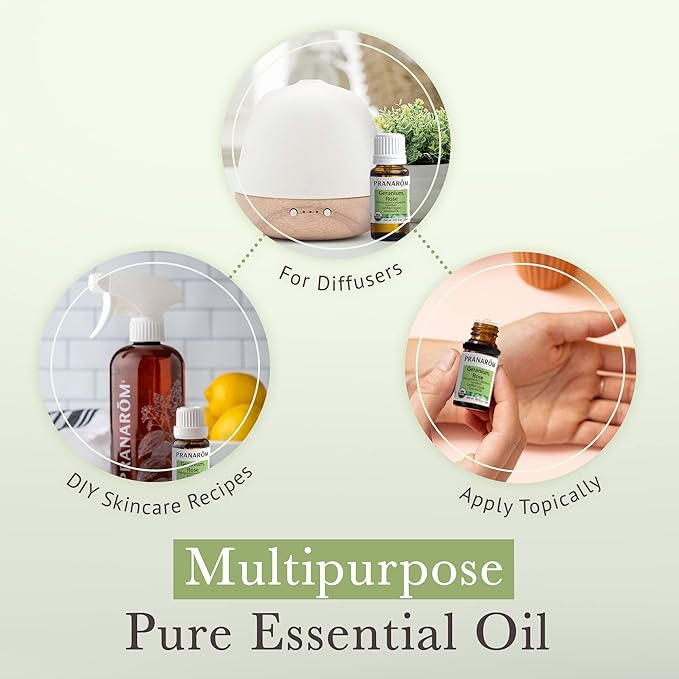 - 100% PURE ESSENTIAL OIL - This Rose Geranium essential oil is distilled and pressed from solely sustainably harvested organic plants. All of Pranarom's products are sourced from organic farms from across the globe to provide only the finest, organic ingredients.