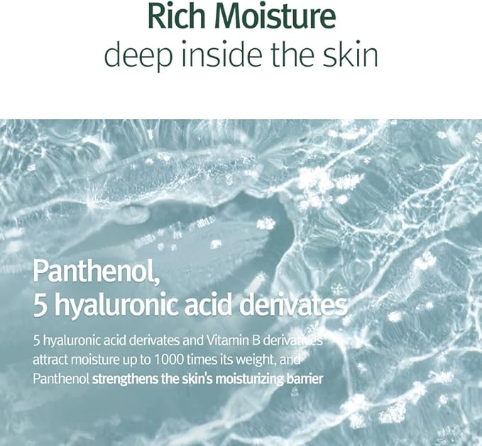 - STRONG MOISTURIZING - Panthenol and 5 Hyaluronic Acids attract moisture up to 1000 times its weight, provide a deep hydrating feeling by quickly supplying moisture to dry skin and White Willow Bark, AHA and PHA ingredients