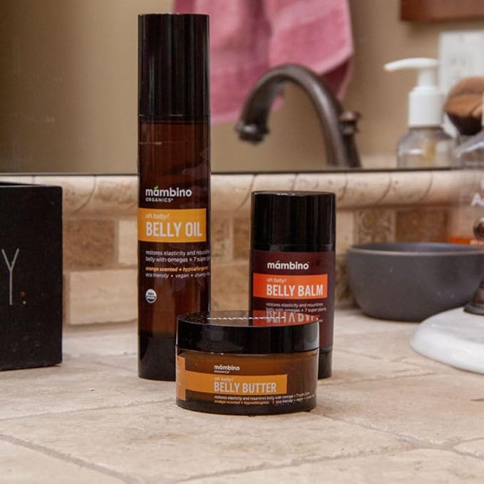 - MAMBINO ORGANICS BELLY BUTTER IN OIL FORM: This organic belly oil for stretch marks is a special blend of nature's most nourishing and healing botanicals; softens the appearance of old scars and limits the development new strech marks; Restores elasticity and hydration, while soothing dry, itchy skin.
