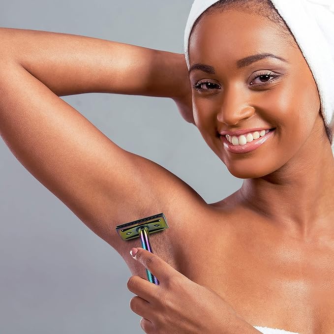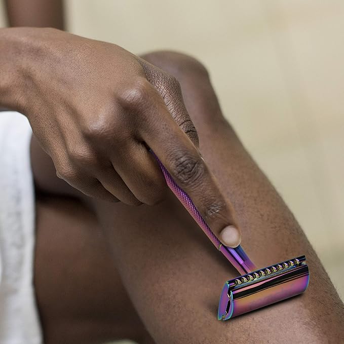 Safety Razor for Women,Safety Razor with 5 Blades,Women Razor with a Delicate Box,Free of Plastic (Stand Style Rainbow Razor)