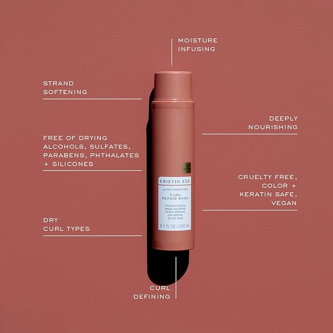 Kristin Ess Hair Ultra Hydrating Curl Repair Hair Mask with Shea Butter - Deep Conditioner Treatment for Dry Damaged Curly Hair, Vegan, Color + Keratin Safe, 6.7 fl oz (Pack of 1)