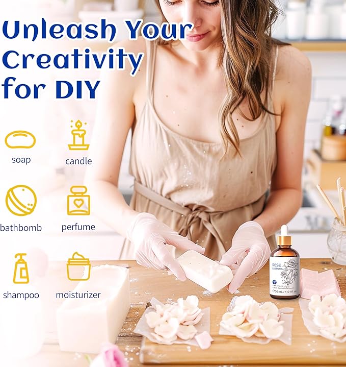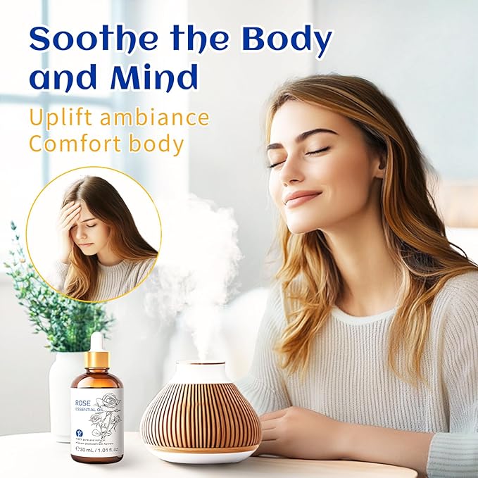 HIQILI Rose Essential Oil 1 Fl Oz, 100% Natural Therapeutic Grade for Aromatherapy, Diffuser, Skin Care, Massage, Includes Premium Quality Glass Dropper