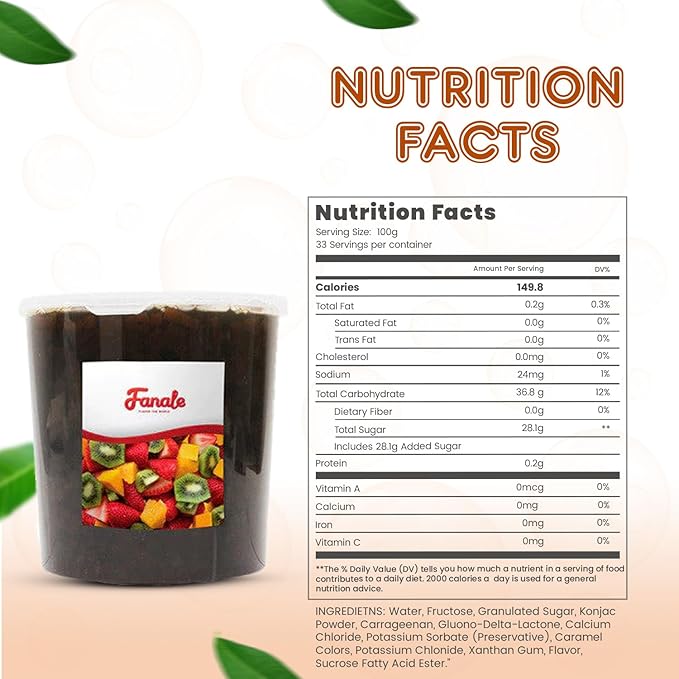 - ๐๐ฐ๐๐๐ญ ๐๐ง๐ ๐๐ฑ๐จ๐ญ๐ข๐ ๐ ๐ฅ๐๐ฏ๐จ๐ซ: Each Fanale coconut jelly boba tea variety is infused with sweet and exotic flavors that complement a range of recipes. This nata de coco jelly topping includes strawberry, lychee, blueberry, mango, sakura, green apple, coconut, Konjac, and coffee flavors, adding a distinct and delightful twist to your creations.