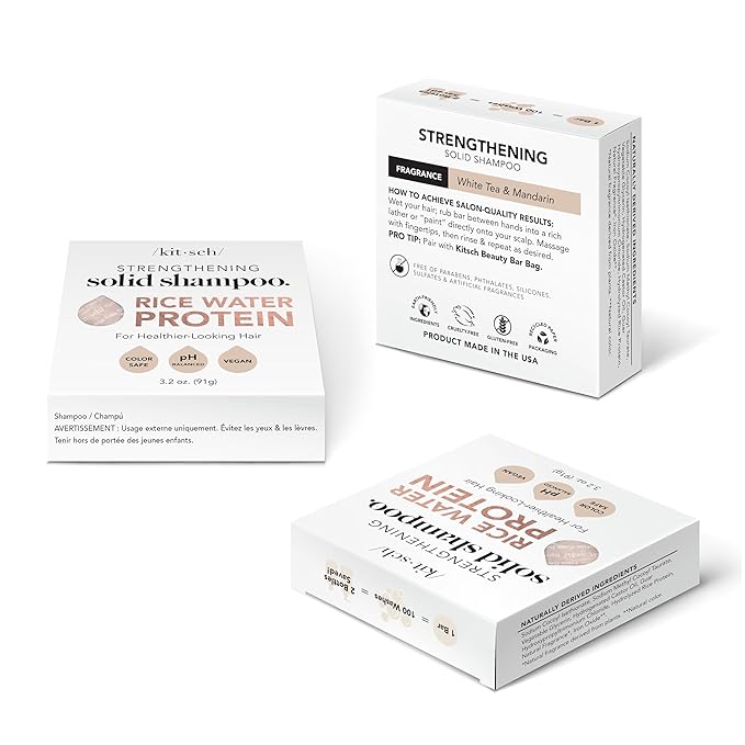 Kitsch Rice Water Shampoo Bar – Dry Hair Shampoo & Soap Bar for Hair Care & Hair Growth – Women and Mens Shampoo – Strengthens Damaged Hair – Vegan, Paraben, Silicone & Sulfate-Free – 3.2 oz