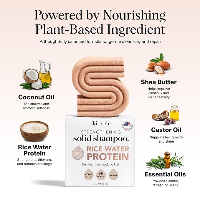 - STRENGTHENS & REPAIRS WITH RICE WATER PROTEIN - Formulated with nutrient-rich rice water, this shampoo bar helps repair damaged hair, reduce split ends, and restore strength. Ideal for dry hair shampoo routines and overall hair care, it boosts elasticity and resilience with every wash.