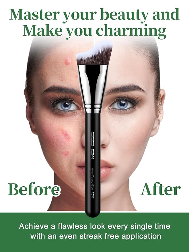 - 【The unique wavy bristles will help the brush adjust to any face shape and feature】This foundation brush has cheek hugging design that fits snuggly underneath the cheekbone, conducive to precision contour application. The density and curved shape of the bristles combine to evenly distribute liquid foundations, gel and cream.