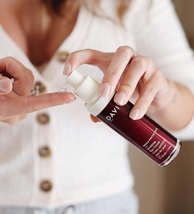 DAVI Soothing Eye Cream with Blue Light Protection | Under Eye Cream for Dark Circles and Puffiness | Anti-Aging Eye Cream for Dry Skin | All Natural | Non-GMO | Paraben-Free | Cruelty-Free | 1 Fl Oz