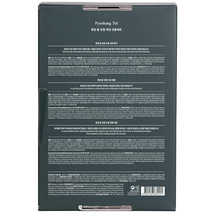 - πΏ WHY PYUNKANG YUL? - Along with know-how recipe of Pyunkang Yul Eastern Medicine Clinic, specialized in treating skin and respiratory diseases for about 50 years, the calming line gift set helps to calm angry skin comfortably by carefully selected ingredients found in nature and rigorous testing.