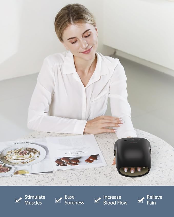 - Adjustable Modes to Suit Your Comfort: Customize your session with 3 massage modes, 3 intensity levels, and 2 heat options. Whether you prefer a light press or deep relief, this device adapts to your personal needs for both left and right hands.