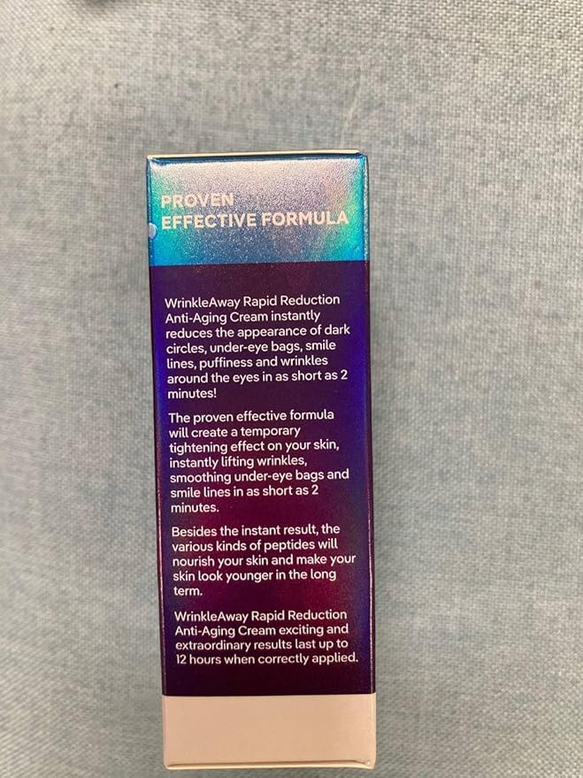 - INSTANT RESULTS — WrinkleAway Rapid Reduction Anti-Aging Cream instantly reduces the signs of aging and the appearance of dark circles, under-eye bags, smile lines, puffiness, and wrinkles around the eyes in as little as 2 minutes!