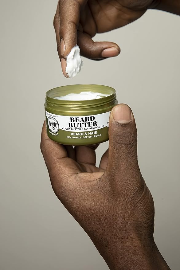 - Men’s Beard Butter with cedarwood oil and cocoa butter helps to moisturize, soften, and define your beard and hair to achieve a natural groomed look for touchable soft and smooth hair