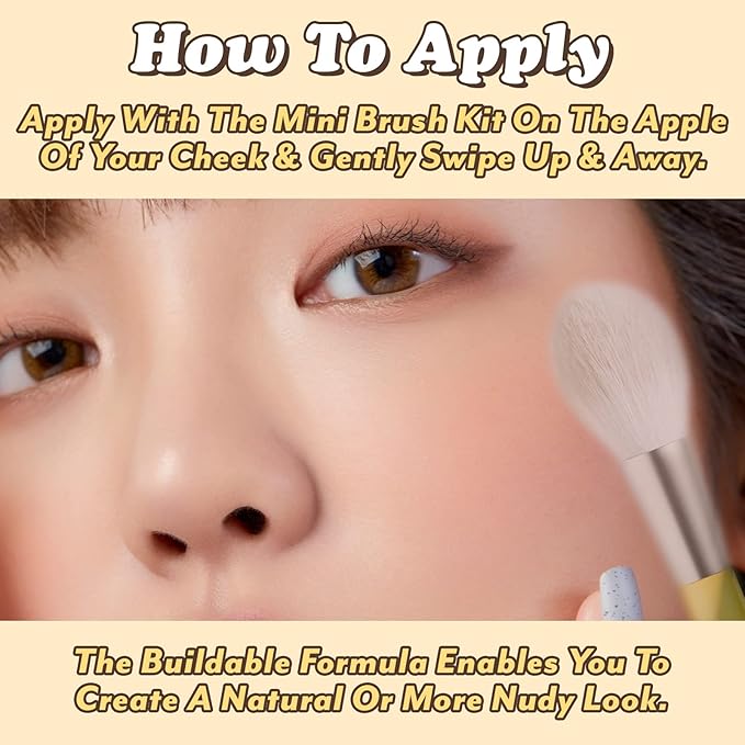 - USEFUL TIP: Recommended to use with I'M Mini Brush Kit at the apple of your cheek and gently swiping up and away. The buildable formula enables you to create a natural or more nudy look. Do not use around the eye area.