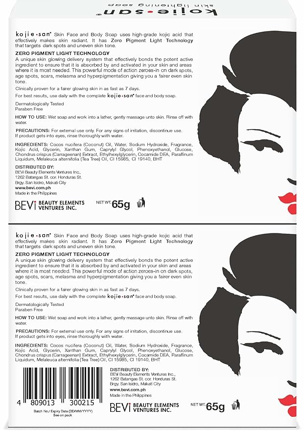 - Home of the Original Kojic Acid Soap – Kojie San’s formulation blends effective ingredients to nourish your skin and target blemishes to reveal your inner beauty! Check your product’s authenticity with our Hidden Tag technology.