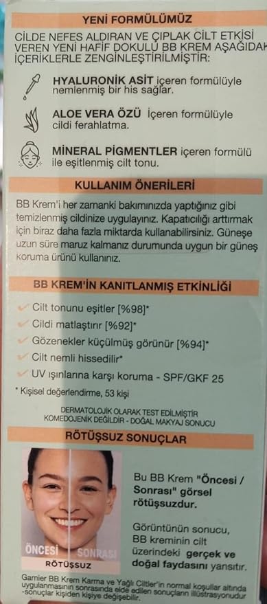 Garnier Skin Naturals Classic Hyaluronic Aloe All-in-1 BB Medium Cream, 50ml