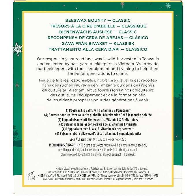 Burt's Bees Lip Balm, Beeswax Bounty, Classic, 4-Pack, 0.15 Oz