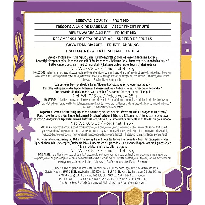 - PACKAGE CONTENT: One package of Burt’s Bees Lip Balm Beeswax Bounty Gift Set contains four 0.15 oz tubes of balm with holiday-themed packaging that is a neat fit in your holiday gift basket or present