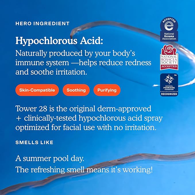 Tower 28 SOS Daily Rescue Facial Spray for Sensitive Skin, Hypochlorous Acid Spray Helps Visibly Reduce the Appearance of Redness and Breakouts, Travel Size Toner for Face, 1 FL Oz