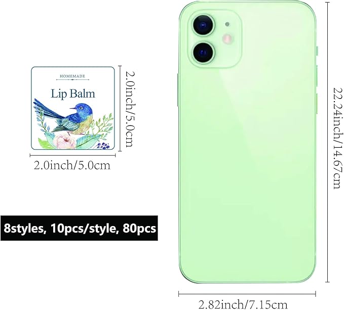 - Package Includes: 80pcs lip balm labels, each about 2 x 2 inches/ 5cm x 5cm. Pattern: flowers and birds. Great to pack your lip balm tubes, chapstick, handcream, candle jars, essential oil containers etc.
